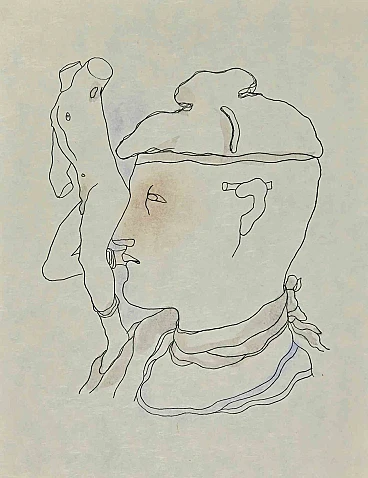 Figura d'uomo è una litografia a colori realizzata da Jean Cocteau (1889 -1963) nel 1930 ca. Disegnatore, poeta, saggista, drammaturgo, librettista, regista francese.Buone condizioni.Jean Cocteau, l'influente artista e scrittore francese, è una figura importante del Surrealismo.Il "senso magico della somiglianza", perseguito dal artista fin dai suoi primi disegni, deve essersi sviluppato dall'osservazione di Sem (Georges Gourçat) e delle caricature di Leonetto Cappiello. Seguendo il loro esempio, Cocteau coltiva l'intensità sintetica della linea per costruire un'opera prima grafica e poi plastica, mirata totalmente a rappresentare la figura umana, sia essa un ritratto o un personaggio immaginario. Toccando leggermente le avanguardie, il cubismo e la metafisica, senza però aderire a nessuno di essi, Jean Cocteau trae profonda ispirazione da due delle figure più importanti del panorama artistico del XX secolo: Picasso e de Chirico. Nel 1928, la Galerie des Quatre Chemins, allora galleria di Cocteau sia per le mostre che per le pubblicazioni dell'artista, ospita una mostra dal titolo “Disegni di un dormiente”. Questi venticinque disegni, pur esemplificando perfettamente la sensibilità di Jean Cocteau per l'arte delle linee, mancano di quella sorta di spontaneità che caratterizzerà invece le successive illustrazioni di un'opera datata 1930 e intitolata “Opium”. della linea, da lui definita come un continuum vivente di tutti i suoi percorsi, sono degne di menzione le sue stesse parole: “la linea fa una nota continua che né l'orecchio né l'occhio percepiscono. È lo stile dell'anima, in un certo senso, e se questa linea cessa di vivere in sé, se non disegna che un arabesco, l'anima è assente…”. Nella multiforme produzione dell'artista francese sono presenti anche decorazioni murali, dove il tratto forte e fluido diventa il tratto più personale e distintivo della sua arte.Scopri la straordinaria collezione di opere di Cocteau su .