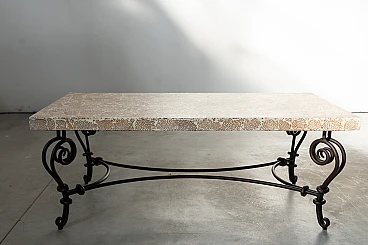 Condizioni: condizioni eccellenti con usura minima. La superficie del tavolo rimane liscia e lucida, mentre la base in ferro mostra una leggera patina, aggiungendo carattere.
