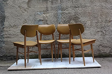 Set di eleganti sedie in puro stile vintage anni 70 in buonissimo stato di conservazione. Seduta e spalliera in sky marrone chiaro e struttura in legno di ciliegio. In ottimo stato con piccoli e bellissimi segni del tempo (guardare foto) misure: larghezza 44 - Profondità 50 - altezza (da terra) 84 - Altezza seduta 50 2 Lotti da 4 differenti. Possibilità vendita unico lotto. #superaffare