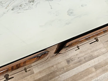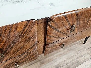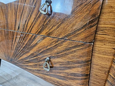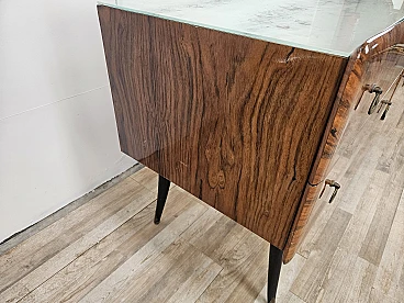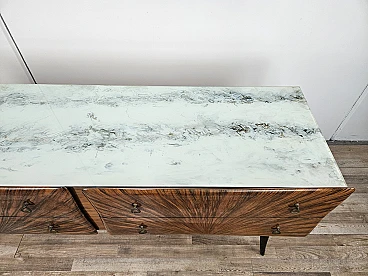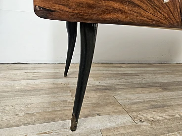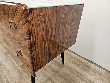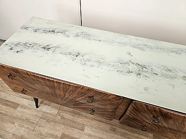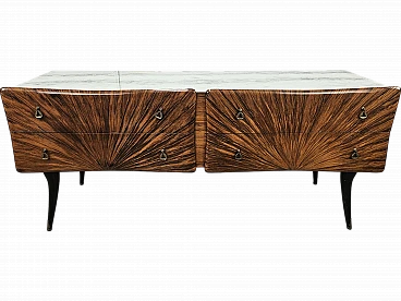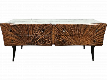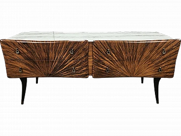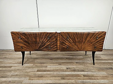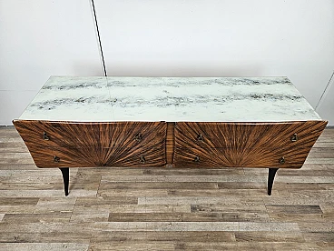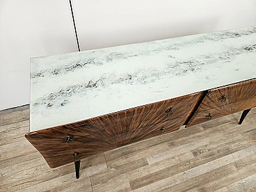 Credenza Mid Century a raggiera con piano in vetro, anni '50