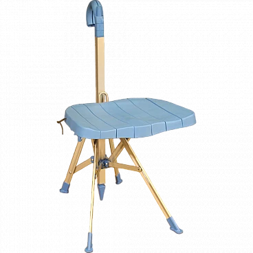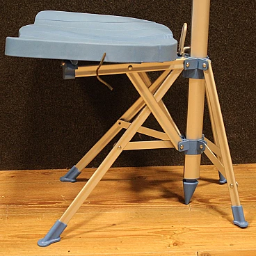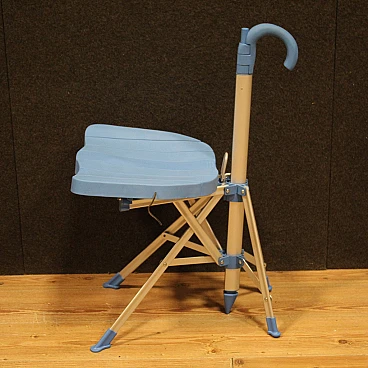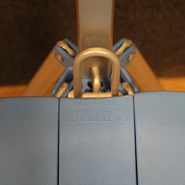 Sedia pieghevole Umbrella su design di Gaetano Pesce (1939-2024) di produzione Zerodisegno. A metà strada tra arte, scultura e architettura, Gaetano Pesce è stato uno dei maggiori esponenti del design italiano. Sedia con struttura in alluminio, seduta e schienale in plastica colore azzurro. Apertura ad ombrello azionabile attraverso meccanismo sul manico e facilmente richiudibile. Mobile che fa parte di un gruppo di 4 sedie con colori differenti con le loro scatole originali (vedi foto e richiedi il prezzo in blocco se ancora disponibile). Presenta alcuni segni del tempo, nel complesso in buono stato conservativo. Altezza alla seduta 47 cm.