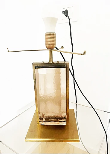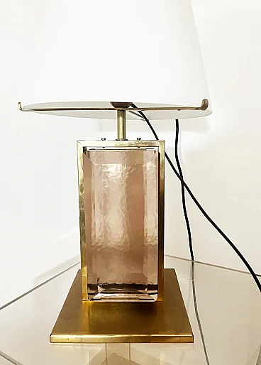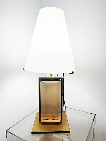 Lampada da tavolo in ottone, Murano e vetro satinato, anni '70
