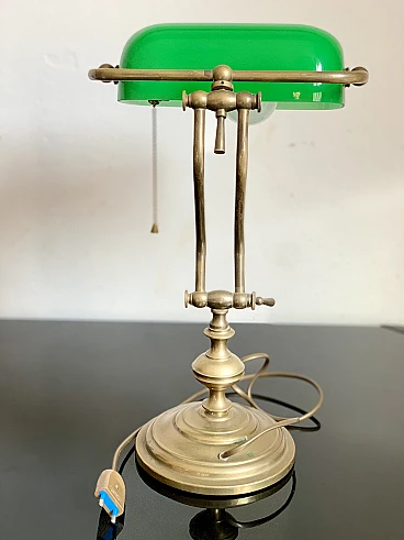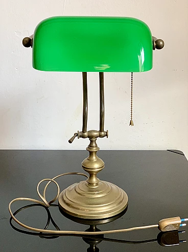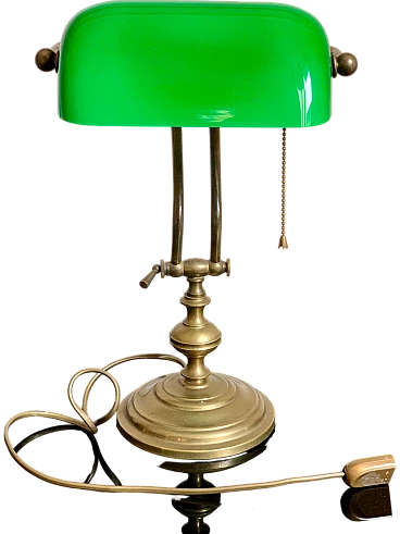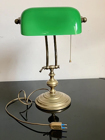Lampada ministeriale in ottone e vetro opalino verde, anni '50