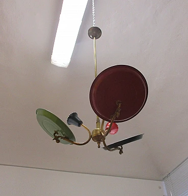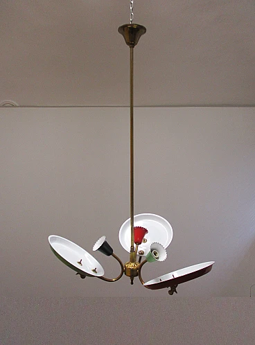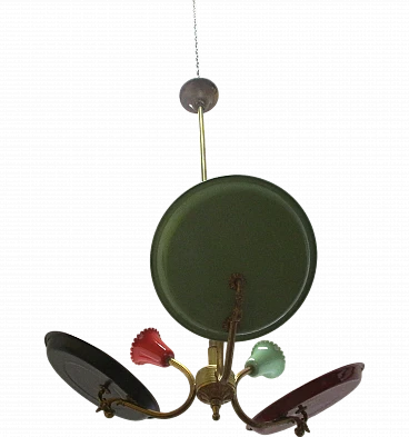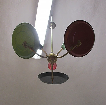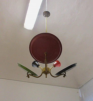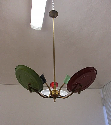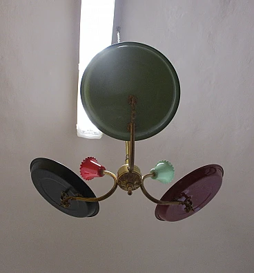 Lampadario design Stilnovo tre luci in ottone e alluminio anni 50