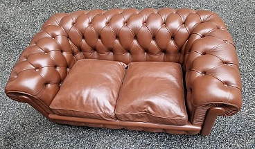 Divano Chester a due posti in pelle marrone di Poltrona Frau, anni '90