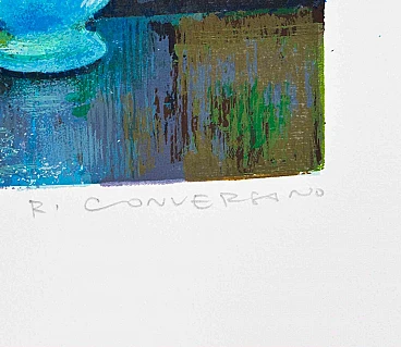 La stampa proposta è una litografia realizzata su carta pregiata con una tiratura di 100 esemplari, in ottime condizioni. La litografia riporta sul fronte il numero di stampa con la tiratura nel margine inferiore sinistro e la firma di mano dell'artista nel margine destro .Romano Conversano si formò all'Accademia di Belle Arti di Venezia e nel dopoguerra risiedette per alcuni anni a Rovereto, dove animò la vita culturale della città. In questa stampa la scala cromatica tipica di Conversano risulta inconfondibile. Le opere a tema paesaggistico dell'artista tendono, come in questo caso, a privilegiare piccole porzioni di paesaggio. La composizione è armoniosa e i dettagli ridotti al minimo per trasformare la realtà in lirismo. In quest'opera dall'attitudine espressionista e dalla manipolazione della realtà in pure emozioni, la stesura essenziale della materia pittorica gioca un ruolo fondamentale.