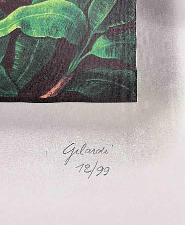 La stampa proposta è una litografia con una tiratura di 99 esemplari, in ottime condizioni.La litografia riporta la numerazione della stampa e la firma autografa dell'artista nel margine inferiore anteriore.Nato a Torino nel 1942, poco più che ventenne Pietro Gilardi tiene la sua prima mostra personale dal titolo “Macchine del Futuro” e solo dopo due anni inizia a produrre le sue prime opere in poliuretano espanso, esponendo a Parigi, Bruxelles, Colonia, Amburgo, Amsterdam e New York. Dal 1968 interrompe la produzione di opere per partecipare all'elaborazione tecnica delle nuove tendenze artistiche della fine degli anni Sessanta: Arte Povera, Land Art, Antiform Art. Nel 1969 inizia una lunga esperienza transculturale indirizzata all'analisi teorica e pratica della congiunzione 'Arte Vita'. Dopo un'esperienza come attivista politico e animatore della cultura giovanile, riprende l'attività artistica nel 1981 esponendo installazioni in gallerie accompagnate da laboratori creativi con il pubblico.