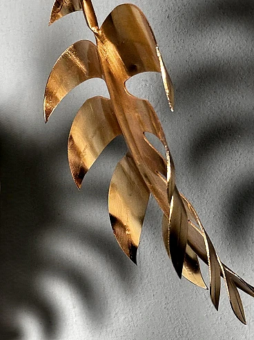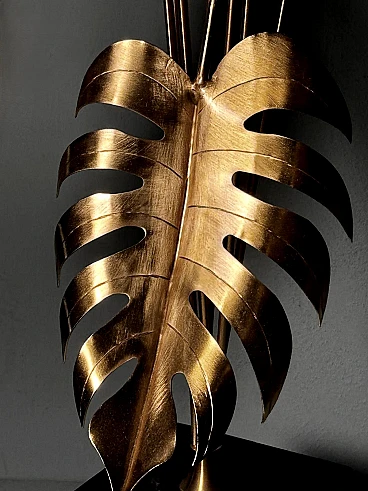 Scultura vegetale in ottone montata su marmo nero Marquinia, anni '90