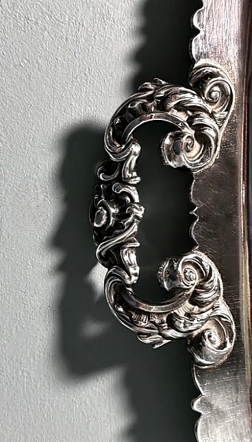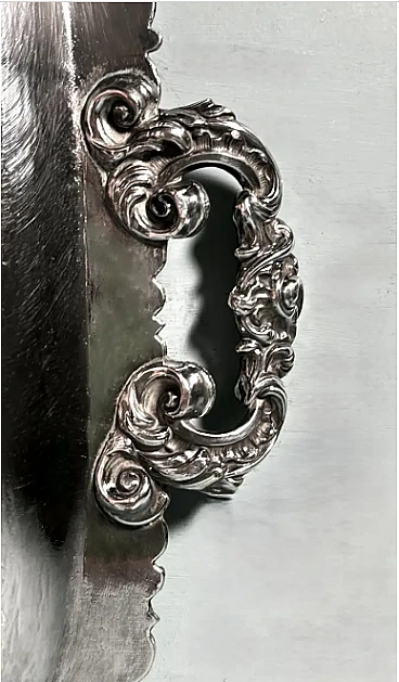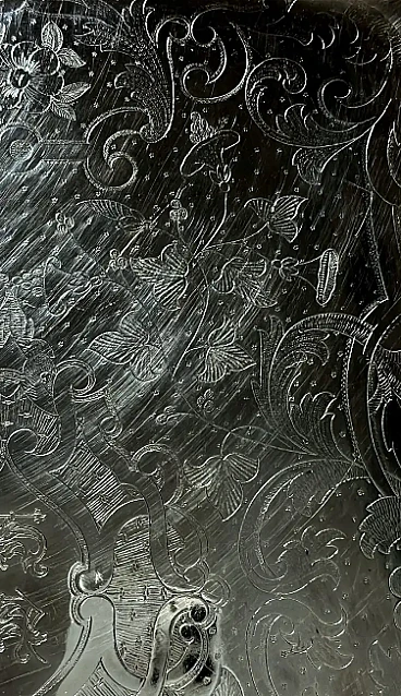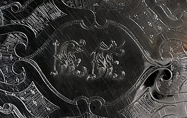 Ti invitiamo a leggere attentamente l'intera descrizione, in quanto ci proponiamo di fornire informazioni tecniche e storiche dettagliate per garantire l'autenticità dei nostri articoli. Questo importante e opulento vassoio inglese Old Sheffield Plate presenta un bordo in lamina d'argento completamente in rilievo. Inoltre, i bordi mostrano una tecnica che copre il rame sottostante con sottili bordi d'argento, un metodo inventato da Robert Robert & George Cadman nel 1795 ("bordi d'argento"). La superficie del vassoio è stata sapientemente incisa a mano con intricati motivi floreali, lasciando uno spazio centrale dove sono state incise le iniziali del proprietario (la scrittura è molto ornata e quindi difficile da interpretare). Le due maniglie sono dei veri e propri capolavori: ricche, imponenti, ma esteticamente equilibrate (nota la dettagliata lavorazione artigianale sia sopra che sotto!). Sul lato inferiore del bordo lungo, troverai il timbro del produttore (vedi foto), con una croce sopra un globo. Anche se leggermente usurata, la parte superiore della croce rimane ben visibile. Se confrontato con il marchio di punzonatura riportato nei libri di riferimento, è facilmente identificabile come appartenente a Walker, Knowles & Co. (47 Burgess St., Sheffield) e risale al 1840 circa (vedi pagine 133, 440, 451 di History of Old Sheffield Plate di Frederick Bradbury). Questo fa sì che il 1840 sia il probabile anno di produzione, collocando il vassoio nella prima epoca vittoriana. Il termine "Sheffield Plate" si riferisce a un processo di fusione di argento e rame, scoperto accidentalmente nel 1742 dall'argentiere Thomas Boulsover di Sheffield. Questa tecnica è stata applicata alla produzione di vari articoli per la casa tra il 1750 e il 1850 circa. Il processo prevede la sovrapposizione e il riscaldamento di fogli di rame e argento ad alte temperature e sotto un'intensa pressione, che li fa aderire perfettamente. Questa lastra bimetallica poteva essere lavorata come l'argento (goffrata, cesellata, incisa o stampata). A partire dal 1770 fu aggiunto un secondo strato d'argento, creando un vero e proprio "sandwich" di tre strati di metallo. La lastra risultante mostrava l'argento su entrambi i lati, rendendola ideale per oggetti come salsiere, zuppiere e vassoi, dove l'argento doveva essere presente su tutte le superfici visibili. Questo processo si è subito rivelato un'importante innovazione tecnica, con un notevole impatto economico e sociale. Nel 1750, gran parte dell'attrezzatura domestica utilizzata dalla borghesia, che aveva sviluppato gusti raffinati, era prodotta in Sheffield Plate. Questa classe sociale, desiderosa di emulare lo stile di vita di nobili e aristocratici, trovò nella Sheffield Plate un'alternativa economica all'argento massiccio, che le permise di realizzare le proprie aspirazioni. Gli articoli Sheffield Plate non erano in alcun modo inferiori, se non per il costo, all'argenteria dell'epoca, contribuendo al successo diffuso di questa tecnica. Tuttavia, dopo il 1840, con l'avvento della galvanica (un processo di argentatura galvanica), la Sheffield Plate cadde gradualmente in disuso e venne chiamata "Old Sheffield Plate". Il vassoio è in buone condizioni, non è mai stato restaurato e mostra la naturale usura dei suoi 184 anni. Dimensioni: larghezza 48 cm, profondità 30 cm, altezza 2 cm. Per tutte le spedizioni utilizziamo materiali di imballaggio speciali (casse di legno, polistirolo, etc.) per garantire la massima protezione e sicurezza degli articoli.