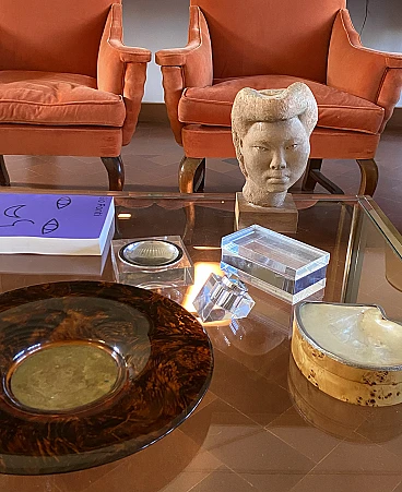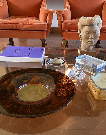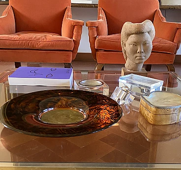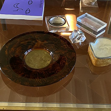 Vassoio in ottone e lucite tartarugata, Guzzini, 1970