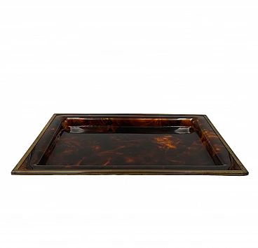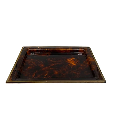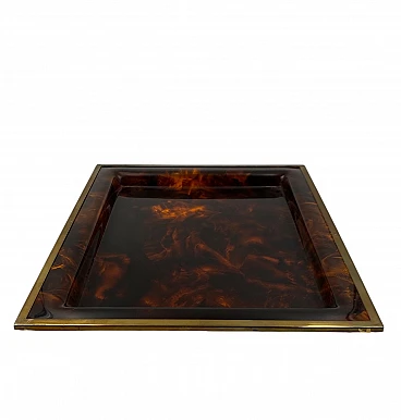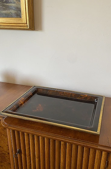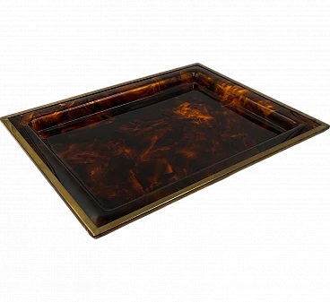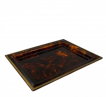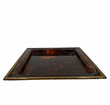 Vassoio in ottone e lucite tartarugata, Italia, anni '70