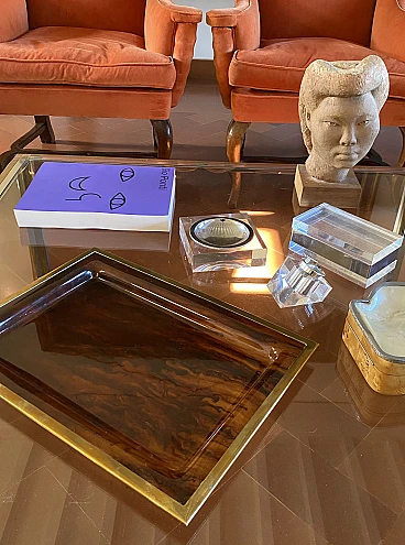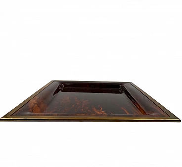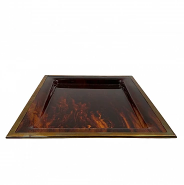 Vassoio in ottone e lucite tartarugata, Italia, anni '70