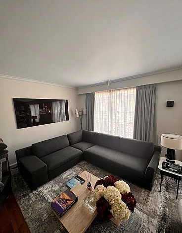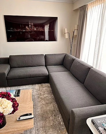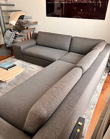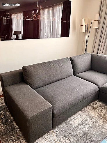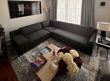 Esempio di design contemporaneo, divano Mister per comodi 6-7 posti, disegnato dall'archistar Philippe Starck per Cassina. Linea raffinata dotata di uno schienale basso e una seduta profonda, completamente rivestita in un morbido tessuto intrecciato grigio scuro. Ottimo stato. Minimi segni di utilizzo, per una casa delle vacanze a Parigi. Il divano ha una silhouette asimmetrica, con un braccio molto più largo e l'altro più stretto con una leggera curvatura, mentre le gambe nascoste creano l'effetto del divano che galleggia leggermente sopra il pavimento. Questo divano è perfetto per uno spazio abitativo contemporaneo e offre l'equilibrio ideale tra comfort e stile. Valore del divano 14.000 euro.