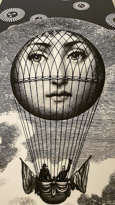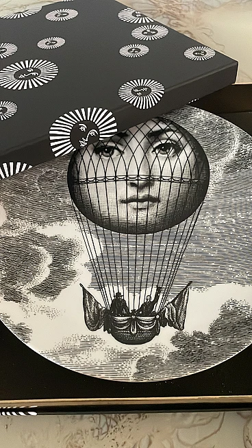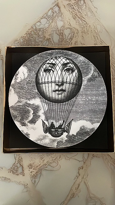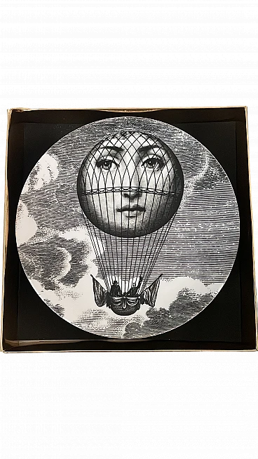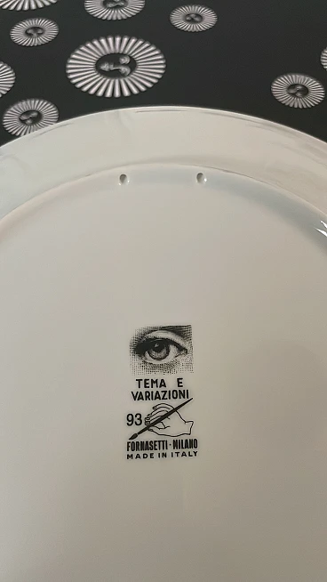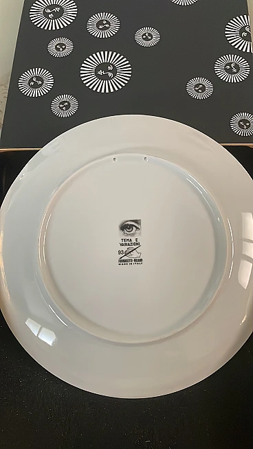 Piatto Tema e variazioni nuovissimo Piero Fornasetti Milano Imballato nuovo con accessori Gancino, scatola e certificato