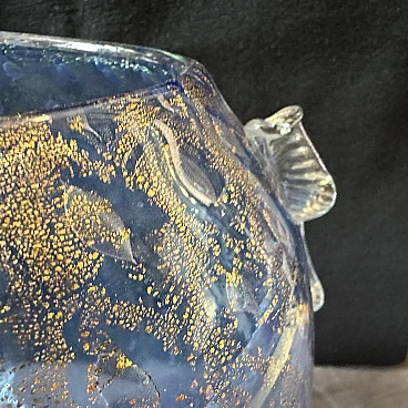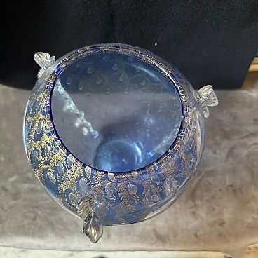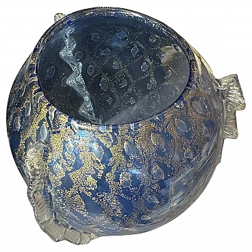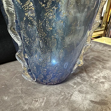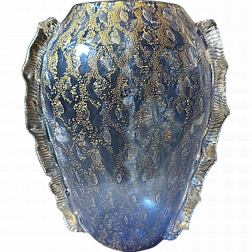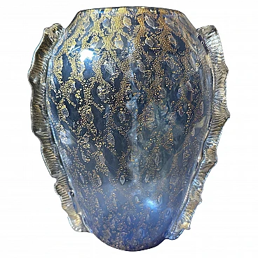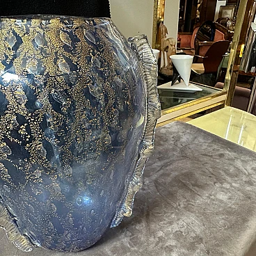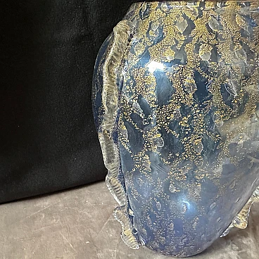 Vaso in vetro di Murano moderno blu e oro in stile Barovier, anni '70