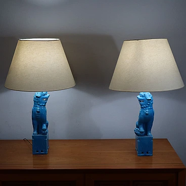 Coppia di lampade a forma di cane Foo in ceramica, anni '90