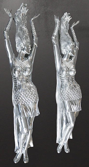 Coppia di sculture Art Deco in resina da nave crociera, anni '90