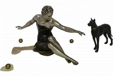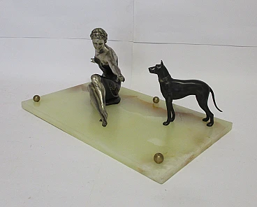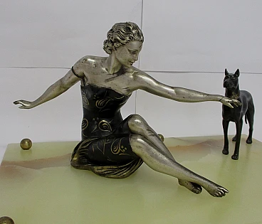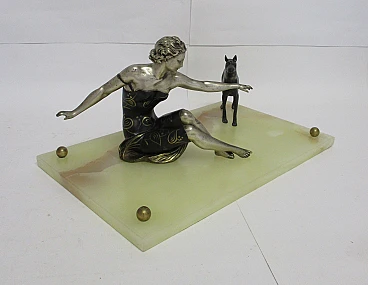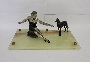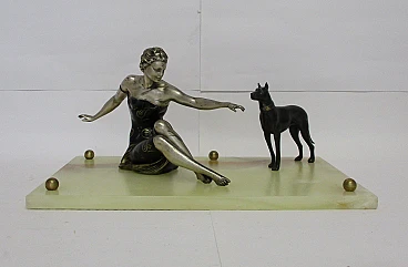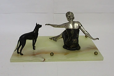 Scultura Donna con Cane Art Deco francese epoca primo 900
