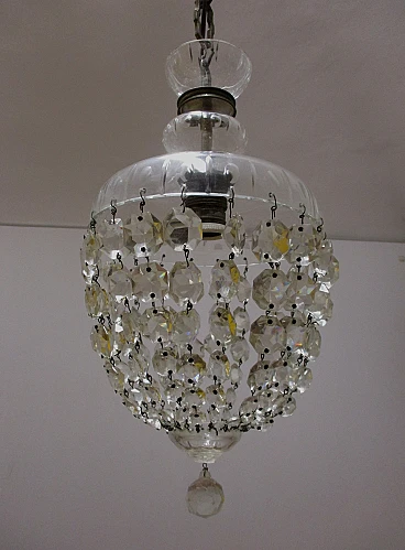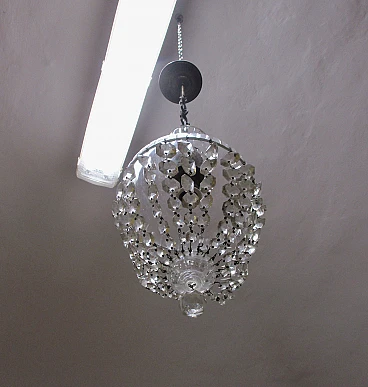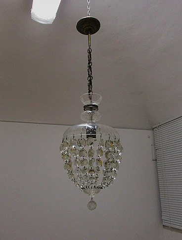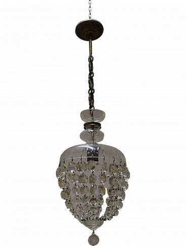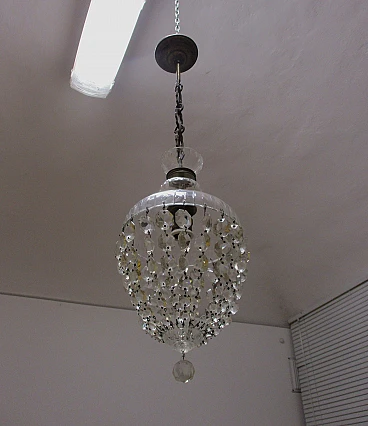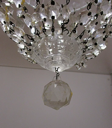 Meraviglioso antico lampadario a cascata Maria Teresa dell'epoca primi 900 , realizzato in cristallo molato con elementi in ottone e pendenti a cascata in cristallo molato sfaccettato , monta porta lampade E27 con ghiera in porcellana , molto bello e di notevole impatto scenografico grazie anche ai dettagli realizzati con accuratezza e raffinatezza , ideale come oggetto d'arredo , eventuali zone più chiare sono dovute al riflesso della luce artificiale , condizioni ottime usato perfettamente funzionante e come da foto. Dimensioni: altezza cm. 70 - larghezza cm. 20