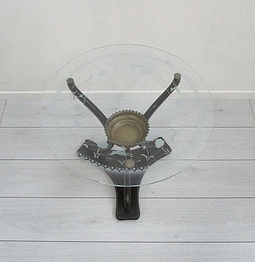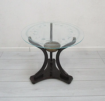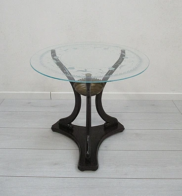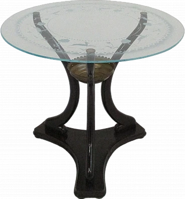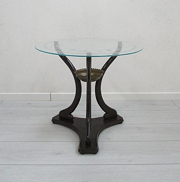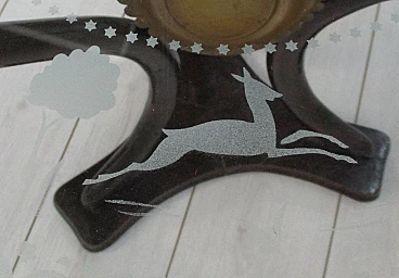 Meraviglioso Tavolino design attribuibile Gio Ponti epoca 1930 realizzato in legno di faggio con elemento in ottone ed avente piano in cristallo impreziosito da splendide raffigurazioni di cerbiatto in movimento , ideale come oggetto d'arredo , molto bello e di notevole impatto scenografico grazie anche ai dettagli realizzati con accuratezza e raffinatezza , eventuali zone più chiare sono dovute al riflesso della luce artificiale , condizioni ottime come da foto. Dimensioni: altezza cm. 53 - larghezza cm. 59