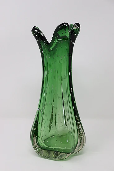 Il vetro di Murano, con la sua ricca storia di artigianato e innovazione, continua a conquistare gli amanti dell'arte in tutto il mondo, e la tecnica del Bullicante ne è un esempio emblematico. Questo vaso, nel suo verde smeraldo sfumato, non solo incarna l'eccellenza dell'arte muranese, ma offre anche un'ampia gamma di possibilità di integrazione nel design degli interni.