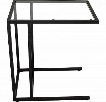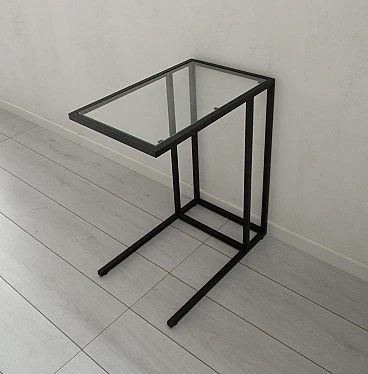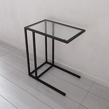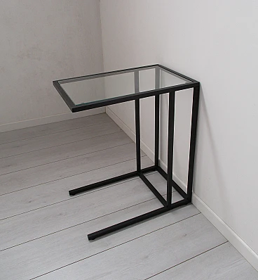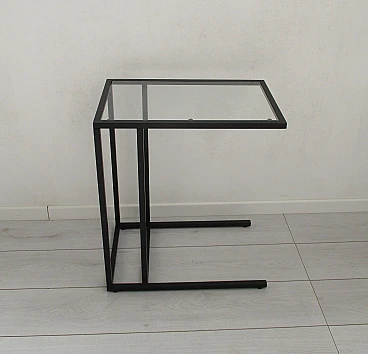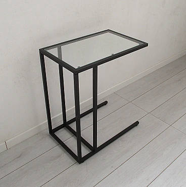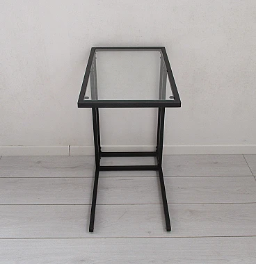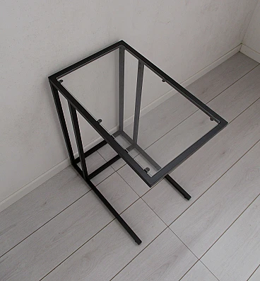 Tavolino d'appoggio design in metallo e cristallo anni 80