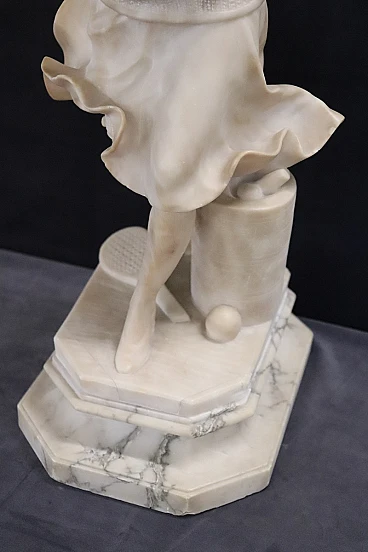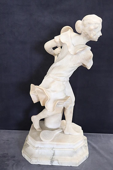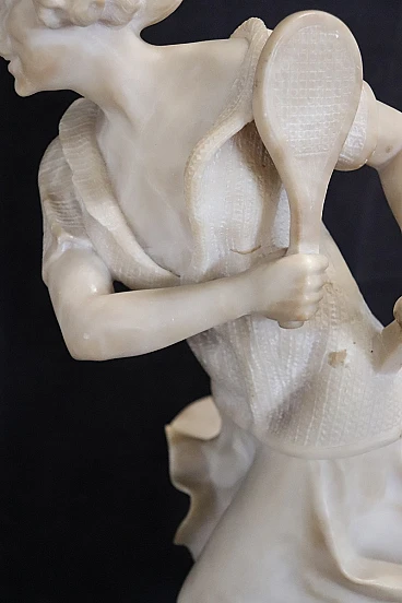 In sintesi, questa scultura non è solo un tributo al gioco del tennis, ma anche una testimonianza della progressiva modernizzazione della società del XX secolo, catturata attraverso la lente dell'arte classica e della raffinata maestria scultorea.