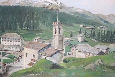 La pennellata materica conferisce profondità e texture alle opere, creando un effetto prospettico che invita l'osservatore a immergersi nei tranquilli scenari naturali. I villaggi nelle vallate e le montagne sullo sfondo sono dettagliati con cura, esprimendo un senso di pace e bellezza tipico della montagna italiana.