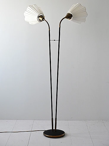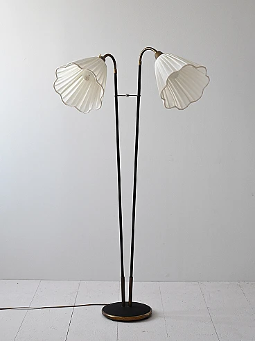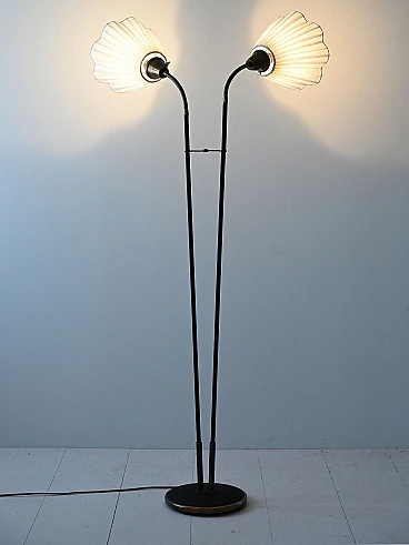 Lampada da terra vintage, doppio paralume plissettato, design elegante e funzionale. Ideale per ambienti sofisticati e retrò.