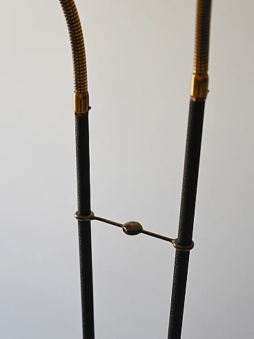 La disposizione dei due paralumi permette un'illuminazione bilanciata, perfetta per salotti, angoli lettura o camere da letto. La combinazione di nero, bianco e ottone conferisce alla lampada un look classico, adatto sia a interni moderni che tradizionali, aggiungendo charme e funzionalità.