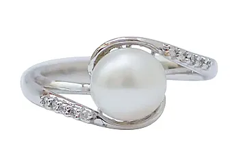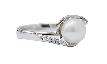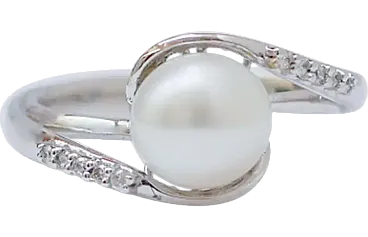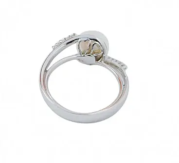 Anello in oro bianco 18 carati con perla e diamanti, anni 2000