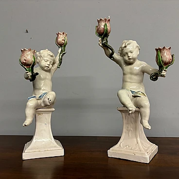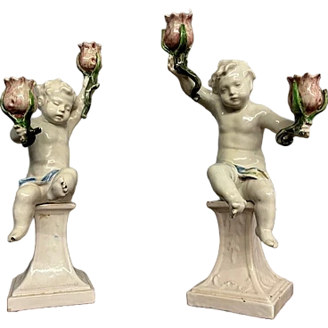 Coppia di putti a candelabri di Angelo Minghetti Bologna, fine 800