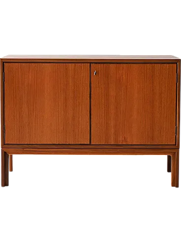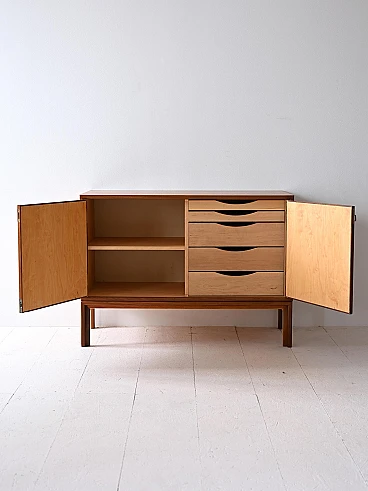 Mobiletto sideboard in legno di teak, produzione scandinava degli anni '60. Il vano interno è suddiviso in due parti: una con mensola e l'altra con 5 cassetti. Design essenziale e funzionale.