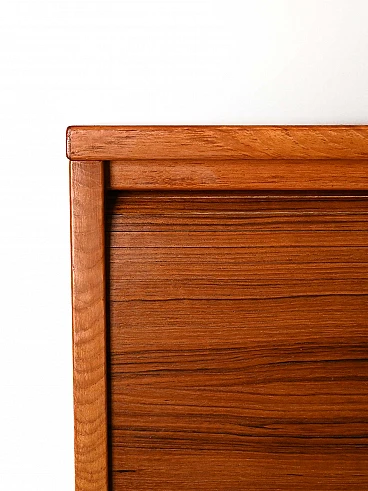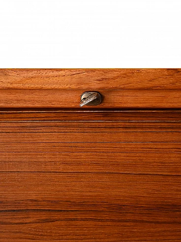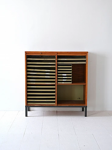 Mobile archivio con serrande in legno di teak, di produzione svedese degli anni '70. All'interno sono presenti cassetti da ufficio.