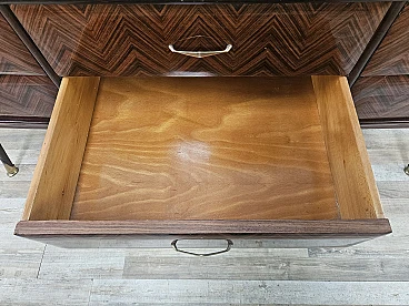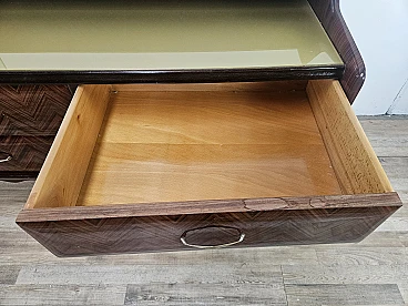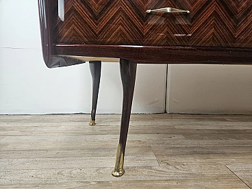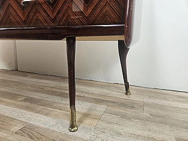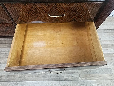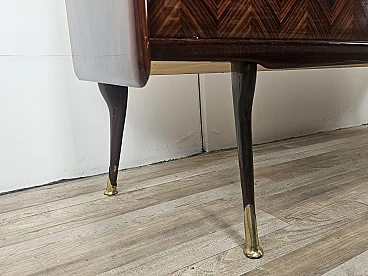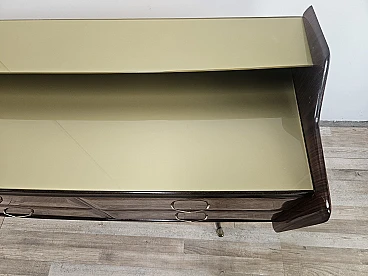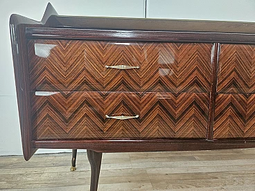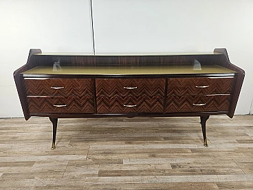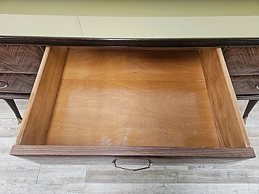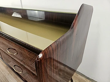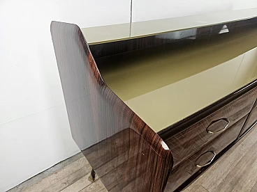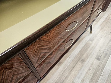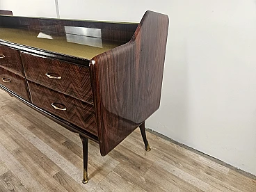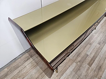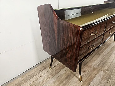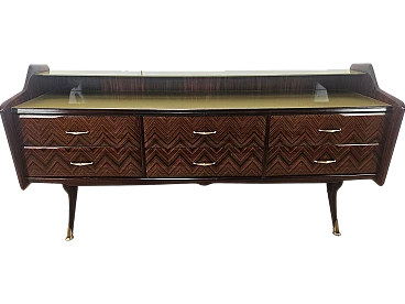Credenza in mogano con sei cassetti e vetri, anni '50