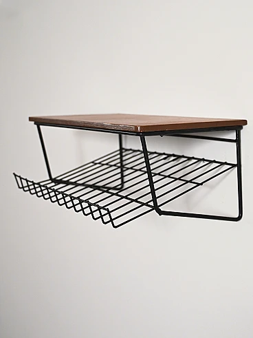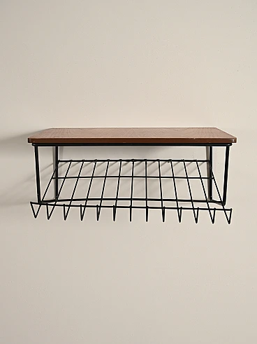 Comodino sospeso svedese in teak e metallo anni '50