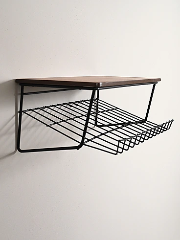 Comodino sospeso di produzione svedese degli anni '50, con ripiano in teak e struttura in metallo. Design leggero e funzionale, ideale per spazi moderni e vintage. Comodino sospeso realizzato in Svezia negli anni '50, caratterizzato da un ripiano in legno di teak e una struttura in metallo nero. Il design minimalista e pratico riflette l'estetica scandinava dell'epoca. Buone condizioni. Potrebbe presentare dei segni del tempo. Per piacere presta attenzione alle fotografie.
