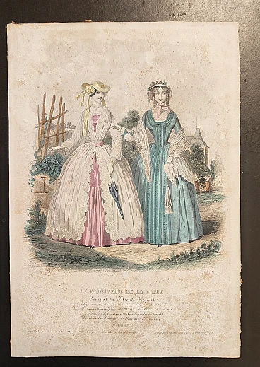 Stampa dal "Journal de damoiselles" fondato a Parigi nel 1833. Destinato alle signorine tra i 14 e i 18 anni, mostra modelli molto accurati ed eleganti in pose, situazioni e ambientazioni minuziose.