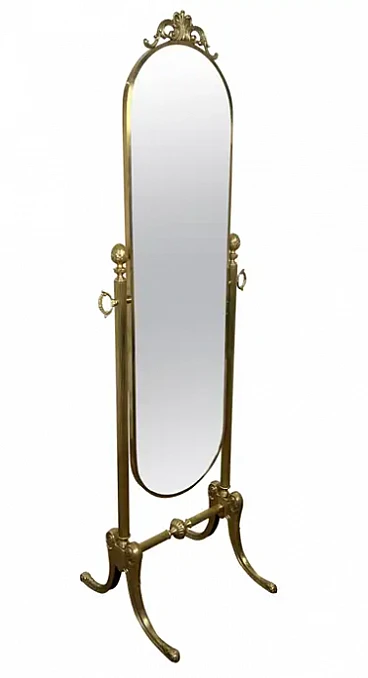Specchio Psiche in ottone oscillante della Maison Jansen, anni '40