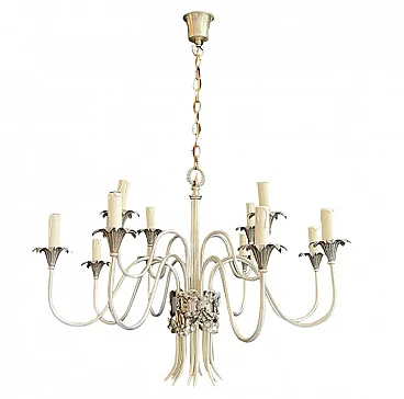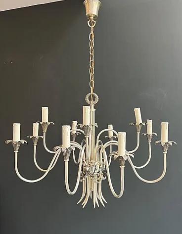 Lampadario in metallo argentato di Maison Charles, anni '40