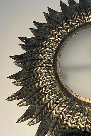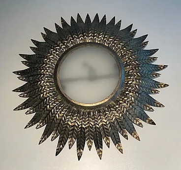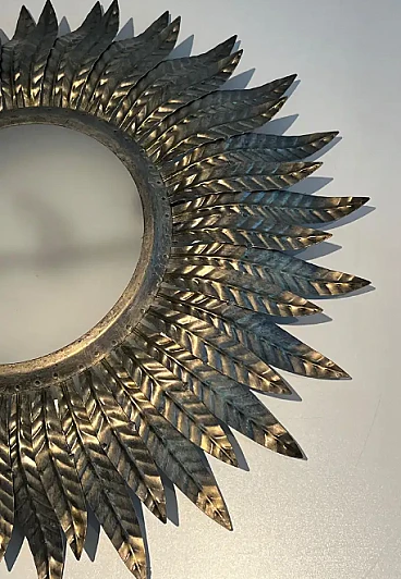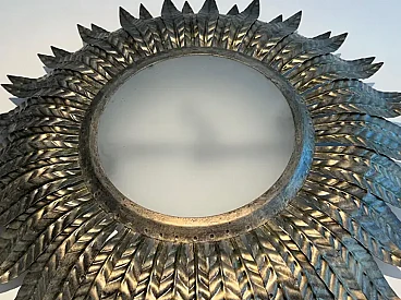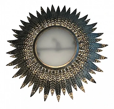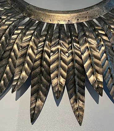 Applique a raggiera in metallo argentato con vetro opaco, anni '70