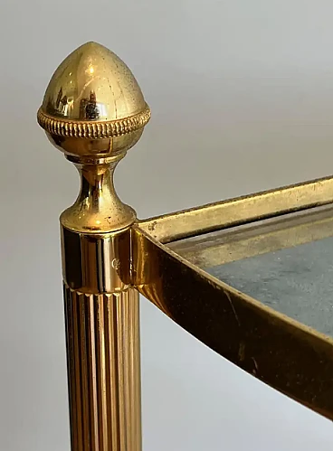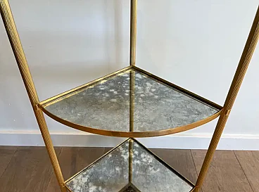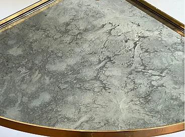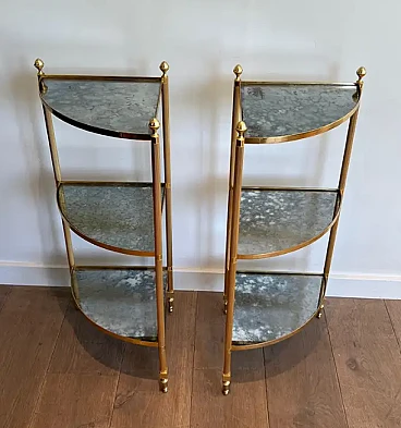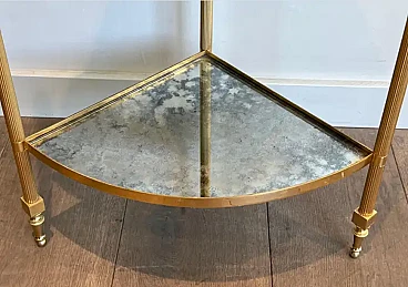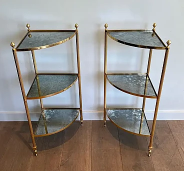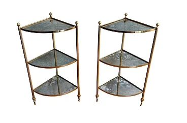 Coppia di tavolini angolari in metallo e ripiani a specchio, anni '40