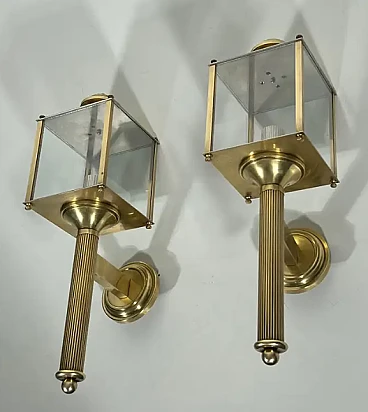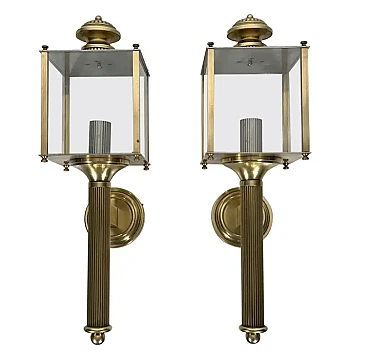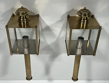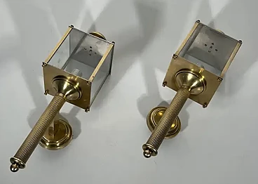 Coppia di lanterne da parete in ottone di Maison Jansen, anni '40