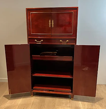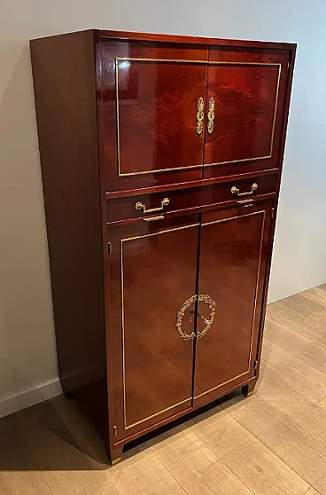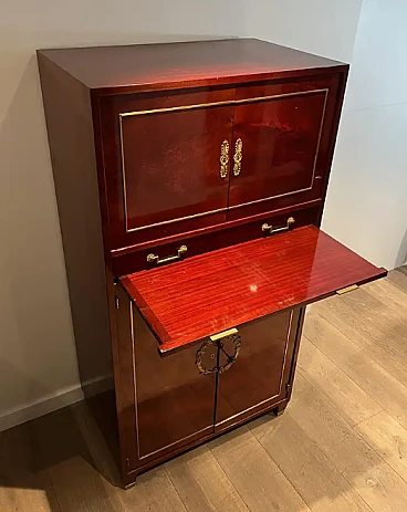 Scrivania Impero in mogano fiammato in stile Aldo Tura, anni '70