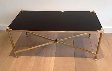 Tavolino in ottone con piano in vetro di Maison Jansen, anni '40