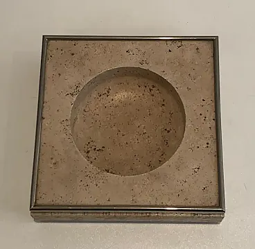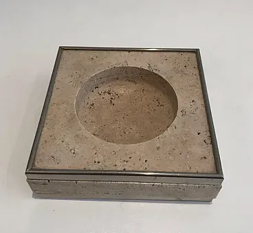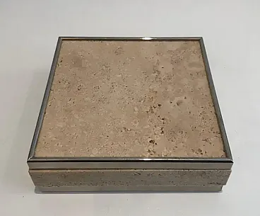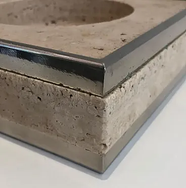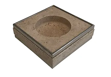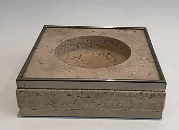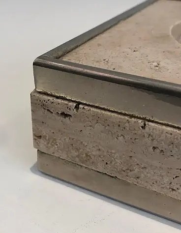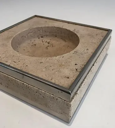 Videopoche in travertino e cromo nello stile di Willy Rizzo, anni '70