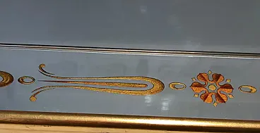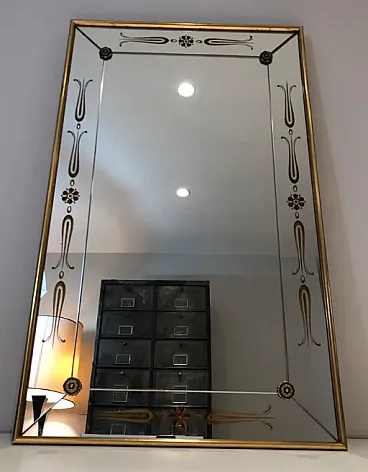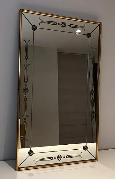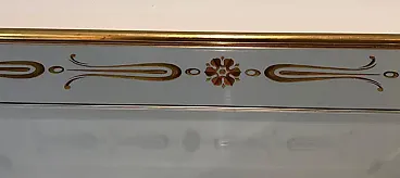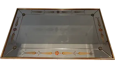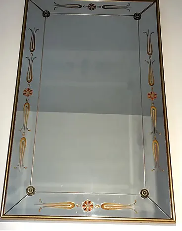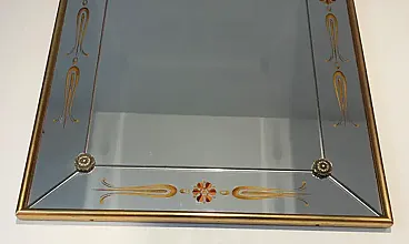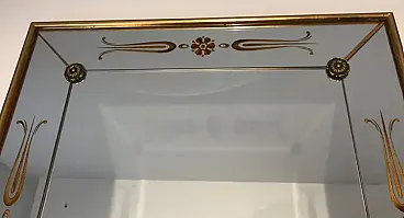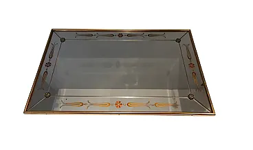 Specchio inciso con decorazioni in oro e rosso, anni '70