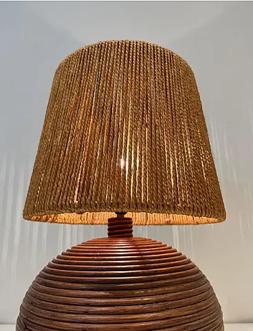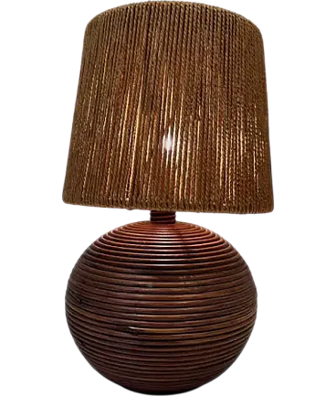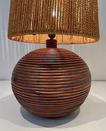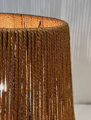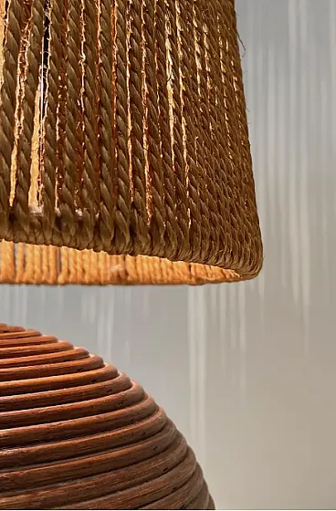 Lampada rotonda in rattan con paralume in corda, anni '70