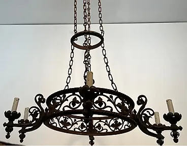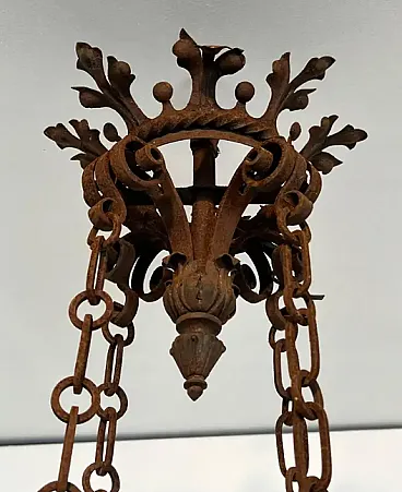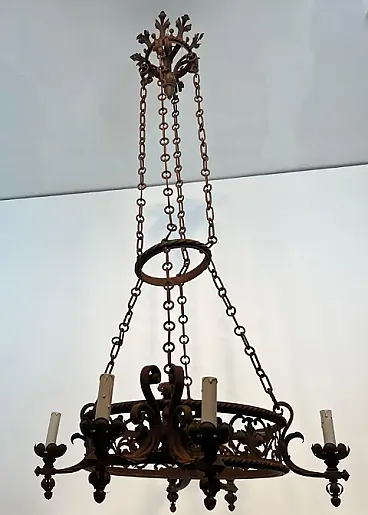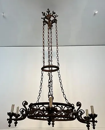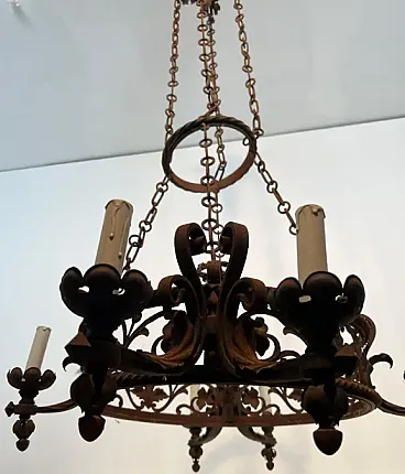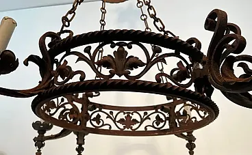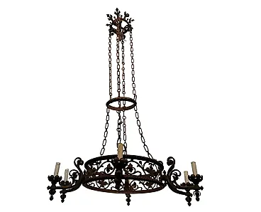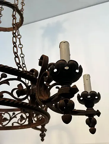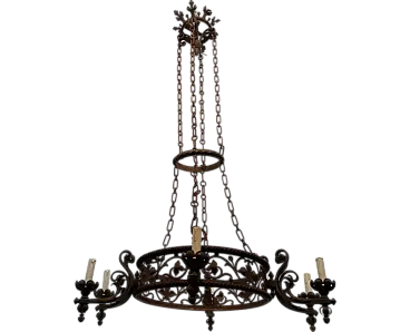 Lampadario da castello in ferro battuto con 6 bracci, primo '900