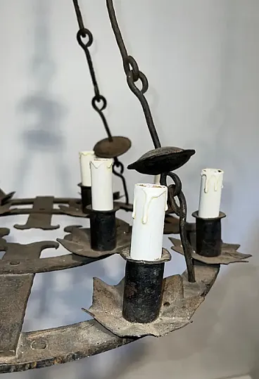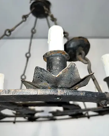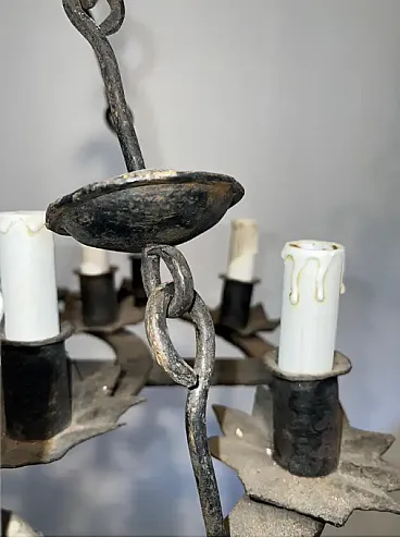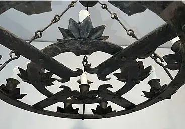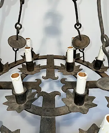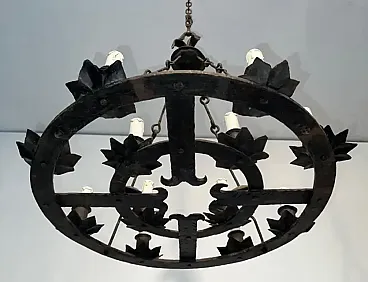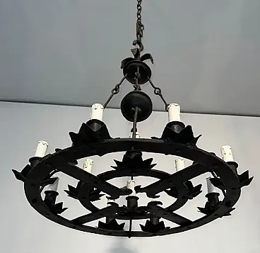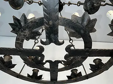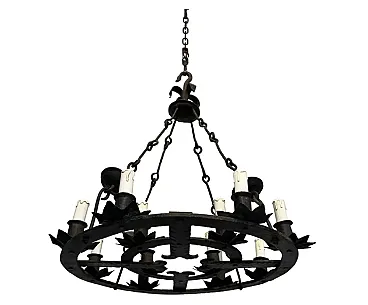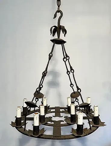 Lampadario in ferro battuto a 12 luci in stile gotico, anni '50